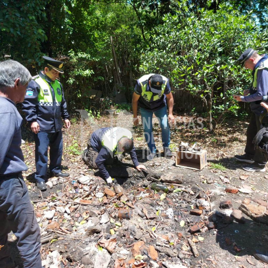 Con autorización de la propietaria de un inmueble deshabitado de calle La Rioja (última cuadra), los efectivos ingresaron al fondo y localizaron, dentro de un pozo ciego cubierto con basura quemada y escombros, los siguientes indicios:
