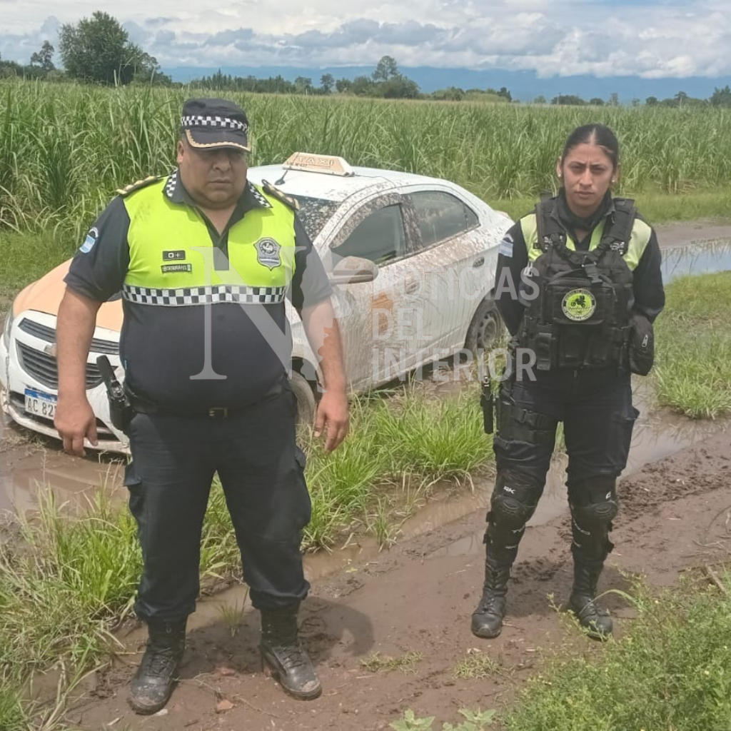 Minutos más tarde, efectivos de la Patrulla Motorizada localizaron el taxi sustraído en un camino vecinal de Los Gucheas, donde había sido abandonado sin ocupantes, aparentemente tras quedar atascado en el barro. El rodado quedó bajo resguardo policial para la realización de las pericias correspondientes.