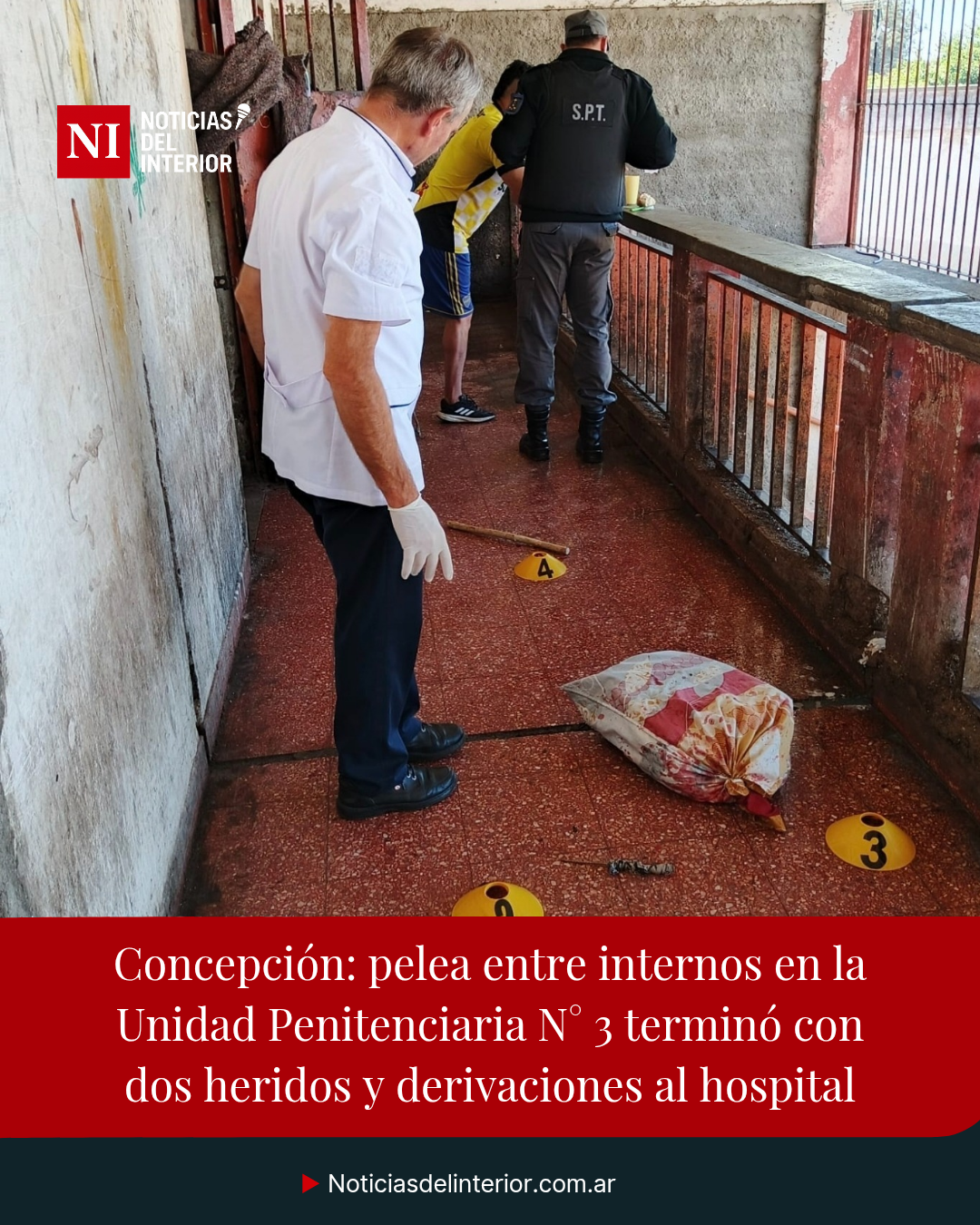 Dos internos de la Unidad Penitenciaria N° 3 de Concepción debieron ser trasladados al Hospital Regional luego de una violenta pelea registrada en la mañana de este viernes dentro del establecimiento carcelario. El hecho tuvo lugar alrededor de las 08:20 y dejó a cinco reclusos involucrados, según el informe policial.