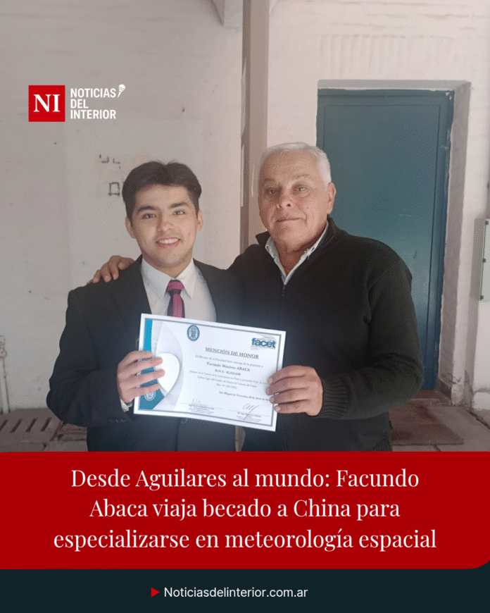 Facundo Abaca, joven investigador oriundo de Aguilares, vive un momento clave en su carrera científica. A los 24 años, y con una trayectoria académica destacada en la Universidad Nacional de Tucumán, fue seleccionado para participar de una instancia internacional de formación avanzada en China, donde representará a la provincia y al país en un espacio reservado para futuros referentes de la investigación espacial.