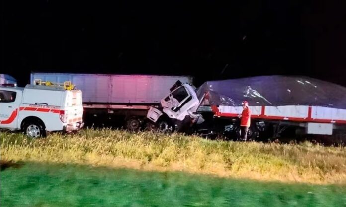 Uno de los vehículos involucrados en el choque era un camión cisterna que trasladaba productos químicos y se necesitó de un equipo especial para remover los restos de la ruta.