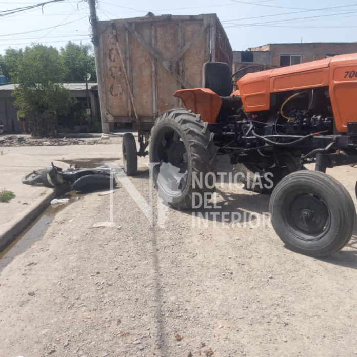 Según fuentes policiales, el siniestro fue protagonizado por un tractor Fiat 700E de color naranja, conducido por Héctor Hugo Corbalán, de 62 años, que por razones que aún se investigan colisionó contra una motocicleta Keller negra sin dominio colocado.