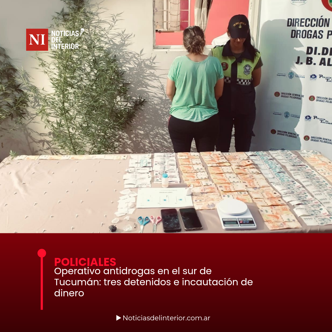 Operativo antidrogas en el sur de Tucumán: tres detenidos e incautación de dinero