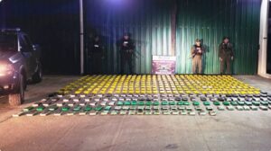 Al asegurar la zona, los efectivos hallaron 19 bultos con 410 panes de cocaína, que arrojaron positivo en Narcotest. En total, el cargamento pesó 431 kilos 325 gramos.