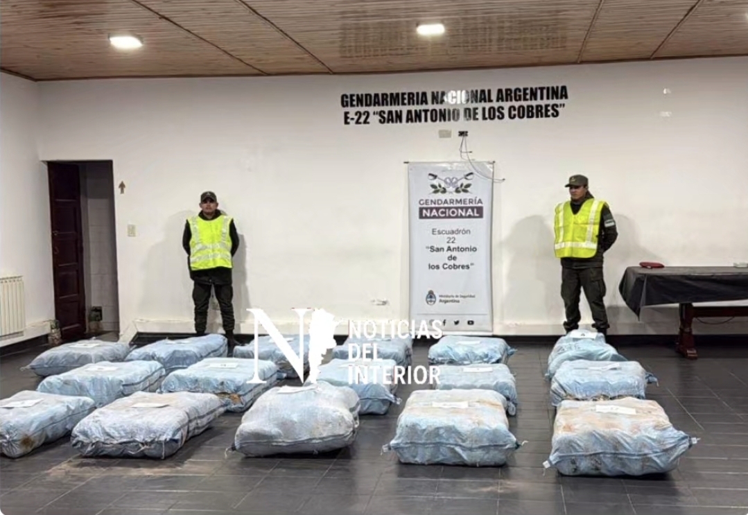 Un despliegue de Gendarmería Nacional en plena cordillera dejó al descubierto un importante cargamento narco en la zona minera de San Antonio de los Cobres, a 3.775 metros de altura, cerca del límite con Chile.