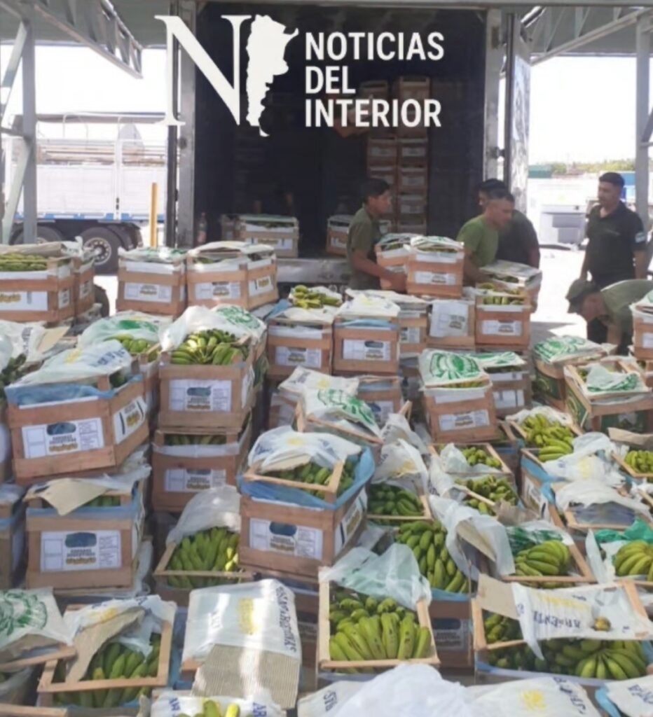 El procedimiento comenzó en el estacionamiento de una feria, donde efectivos del Escuadrón 66 detectaron un camión cargado con bananas que ocultaba 16 “ladrillos” de droga en distintos sectores del vehículo. Además, una persona llevaba otros 12 paquetes en una mochila.