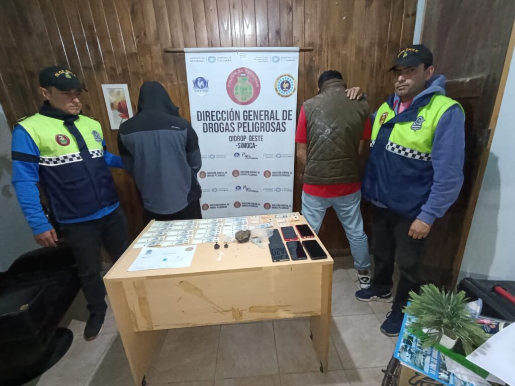 A horas 21:00 aproximadamente de esté domingo 25, en ruta nacional 157, acceso Norte a Simoca, se secuestraron: envoltorios con cocaína, bagullos de marihuana, dinero en efectivo ($384.000) y teléfonos celulares.