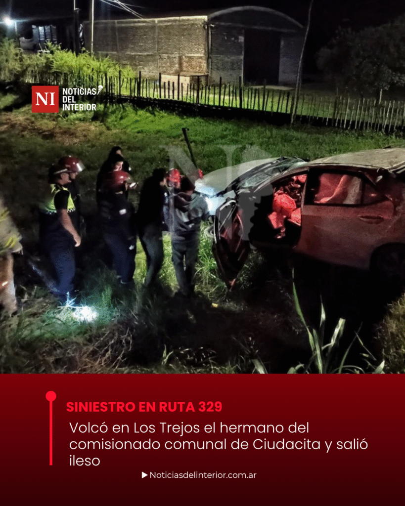 Un joven de 25 años, hermano del comisionado comunal de Ciudacita, Luis Delgado, protagonizó un accidente de tránsito este martes 11 de noviembre, a las 00:20, sobre la Ruta Provincial 329, a la altura de Los Trejos, jurisdicción de la Comisaría de Monteagudo, en el departamento Simoca.