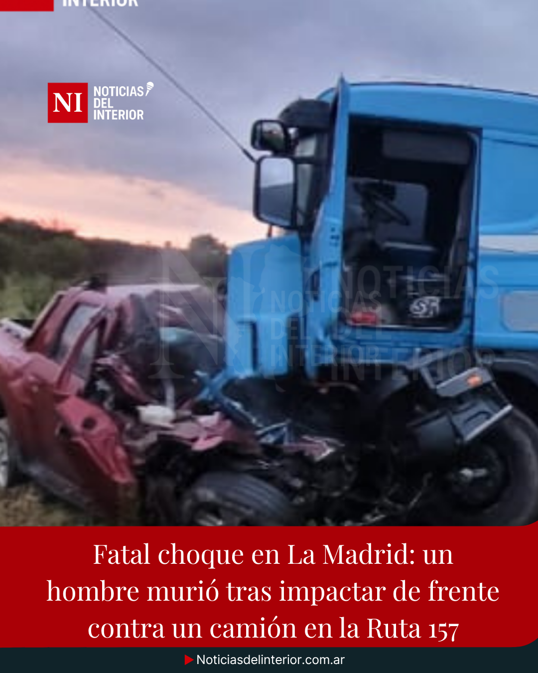Según confirmaron fuentes policiales de la Comisaría de Lamadrid, el siniestro se registró alrededor de las 6:45 en la Ruta Nacional 157, a la altura del arroyo Matazambi. En el lugar colisionaron de manera frontal un camión Scania color celeste, conducido por Marcos Lorenzo Alaniz, de 30 años, con domicilio en Arcadia, y una camioneta Renault Oroch color bordó.
