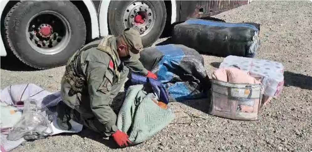 Al continuar con el registro de la bodega del rodado, que llevaba trabajadores “golondrinas”, los gendarmes hallaron bultos de grandes dimensiones hechos con colchas y frazadas.